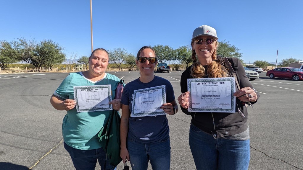 Elite women gaining valuable knowledge and even more valuable skills on self defense. The real life scenarios presented prepare you mentally and physically to react to the unexpected. We all want to thank Agave Firearms Training & Defensive Tactics & Desert Rock Firearms Training and Safety for educating us.”